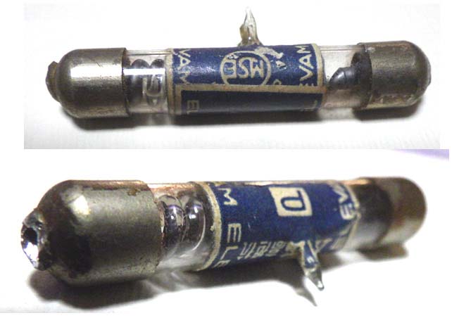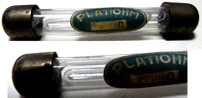 この抵抗器は真空封入されています。 抵抗体の導電性ガラスは湿気にも安定だと思いますが、金属キャップとの接続が 大変だったのでしょう。 * ![]() |