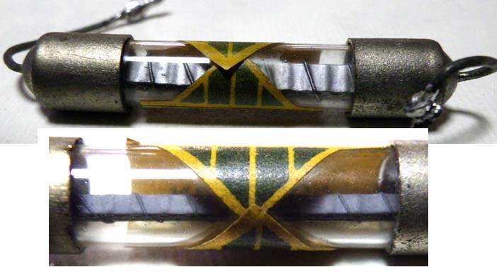 ガラスに鉛を添加すると導電性のガラスが作れますので、このような抵抗器 が作られたのでしょう。 * ![]() |