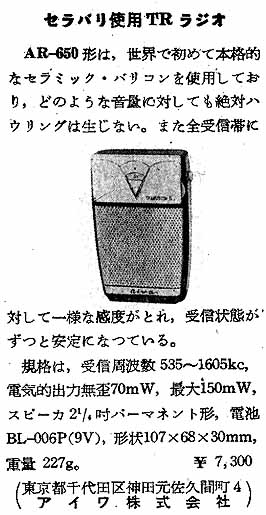アイワ の トランジスタラジオ AR-650