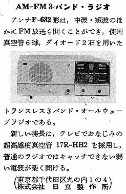 日立製作所の真空管式ラジオ F-632 型