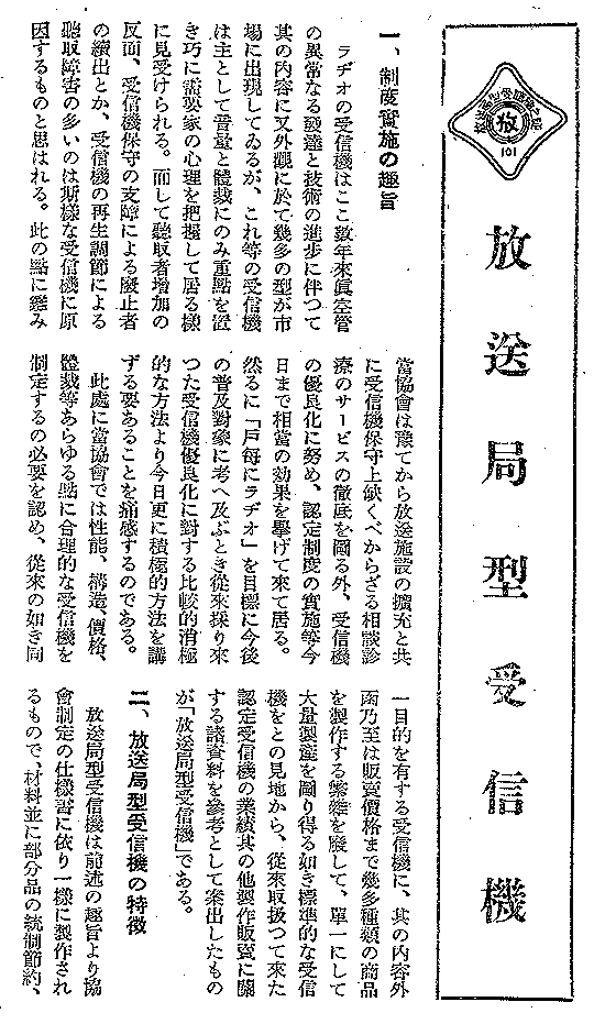 放送局型受信機制度制定に関する解説記事