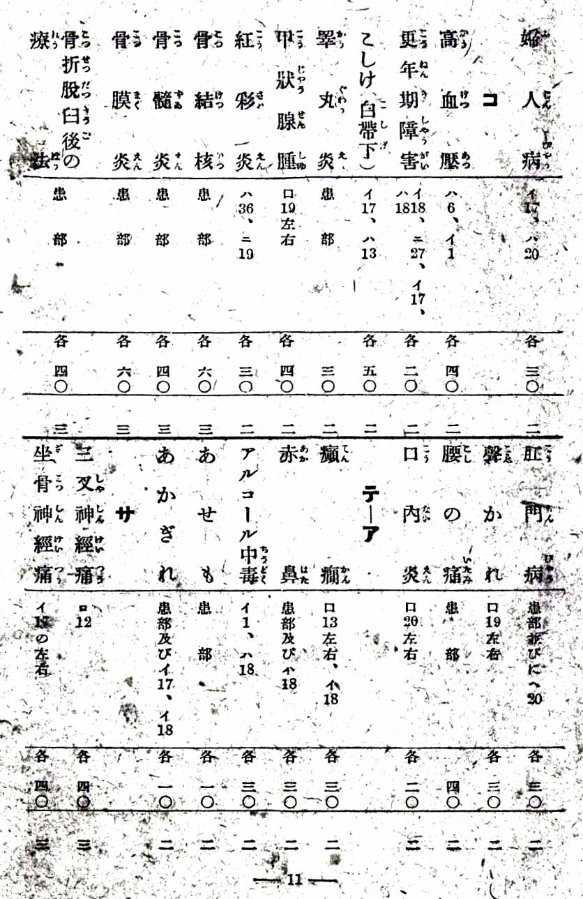 自の魂治療表07 ふ 婦人病〜さ 座骨神経痛