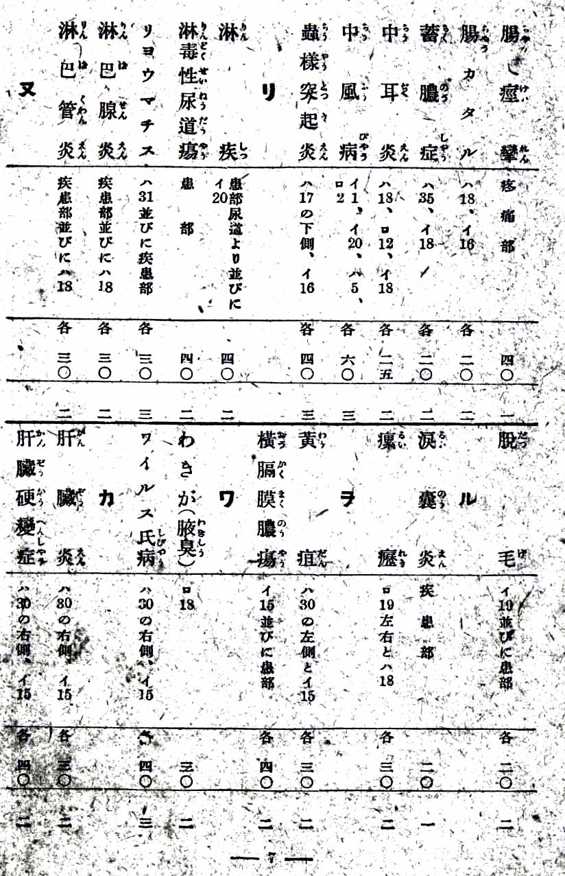 自の魂治療表04 ち 腸痙攣〜か 肝臓硬変症
