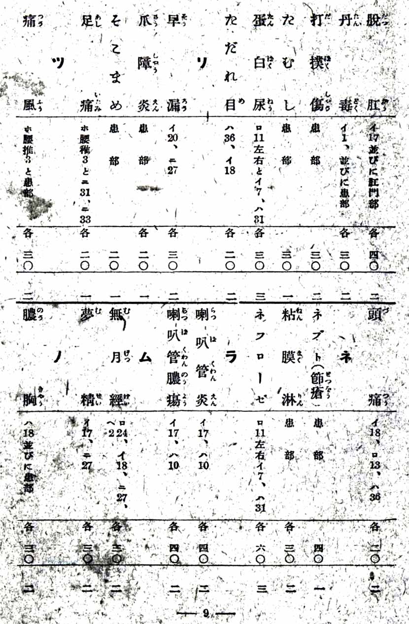 自の魂治療表01 い 胃腸病〜い 遺尿症