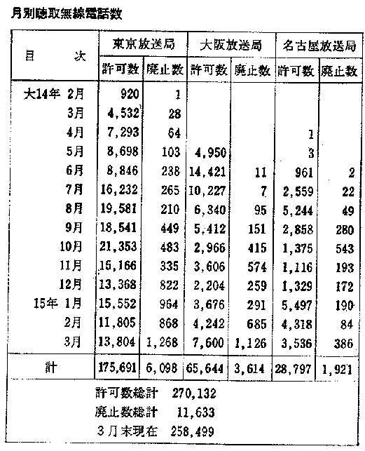 大正14年の2月に放送受信契約申し込み受け付け開始から一年間の推移です