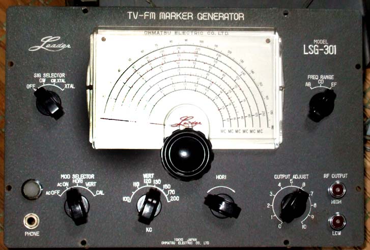 私が高等学校(和歌山工業高校電気課)に入学したのは昭和32年。 テレビジョンはまだまだ高価でしたが、大阪日本橋の電気街では テレビの部品や組み立てキットの販売店が軒を連ねておりました。 * 先輩たちもテレビの自作に没頭しており、影響を受けて自作を始めました。 一台目はオッシロスコープのブラウン管を使った3インチ 二台目はサイズアップして5インチ 三台目は電磁偏向の10インチで長く家族団らんに貢献しました。 * 最近ですが、オークションで調整用の「マーカージェネレーター」が出品されたので、 思わず落札してしまいました。 * 現在の「リーダー電子」の前身、大松電気株式会社(おーまつでんき) の製品です。 |