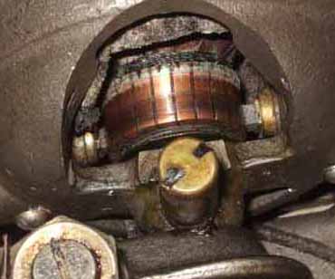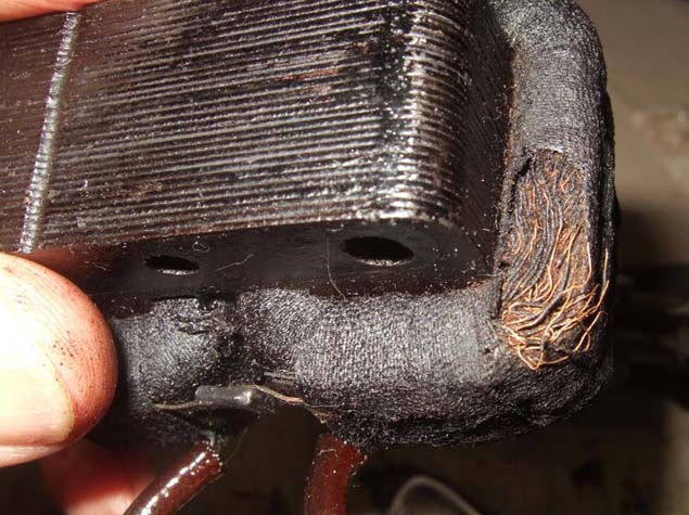 修理の初めは断線した 巻き線の撤去 * カッターナイフで徐々に 切断していきます。 |