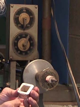 巻き線機に作った巻き枠を セットします。 * 断線したコイルと同じ回数 を巻くのですが 少しだけ細い線を使って はみ出ないように 注意が必要です。 |