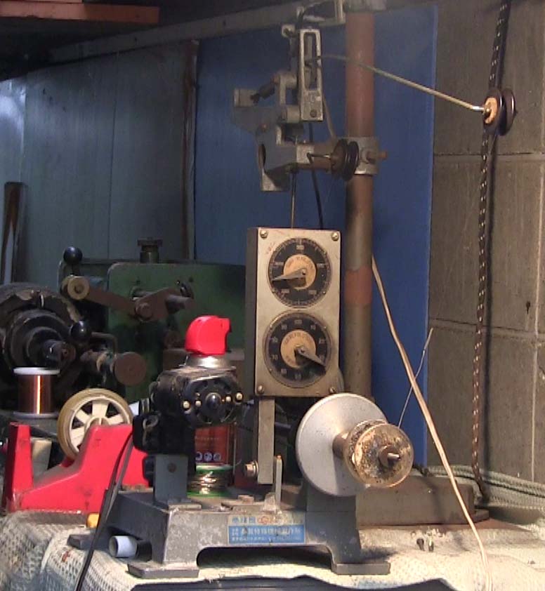 大丈夫の方のコイルに 傷を付けないように 最新の注意が必要です。 * 外したエナメル線を 100本とって重量を測り 全体の重さから 巻き回数を推定。 |