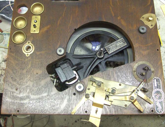 * 回転速度を78rpmに保つのは、ガバナの遠心力を利用して モーターの電源を入り切りして行います * 当然ながら火花が出、雑音の発生源となるので、真空管式の蓄音機には使えないでしょう。 * ![]() |