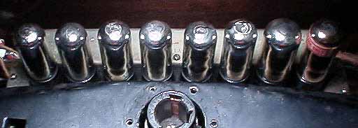 アンテナを外して蓋を開けると、中には8本の真空管が並んでいます。