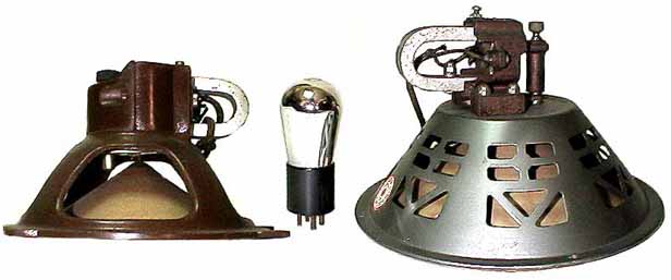 普通の大きさ(左) と 小型(右) の 金属ホーンスピーカ