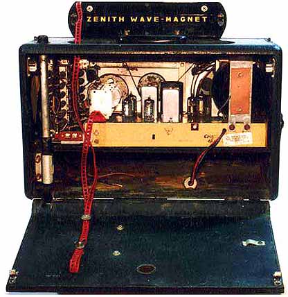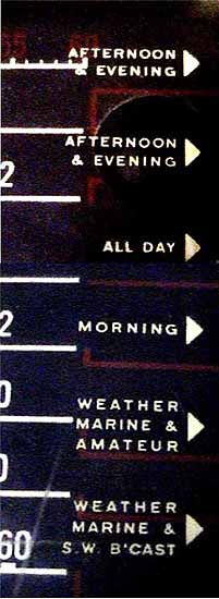 最初期のBCL受信機 ZENITH trans-oceanic 全波受信機 * ゼニス トランスオーシャン * 裏蓋を開くを広いバッテリー収納スペースがあります * * 受信周波数帯 * * よく聞こえる時間帯が表記されています。 * * バンドの選択は押しボタン *