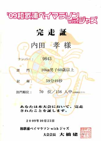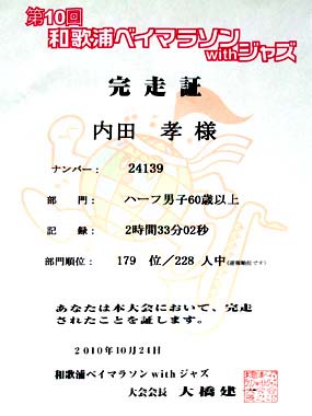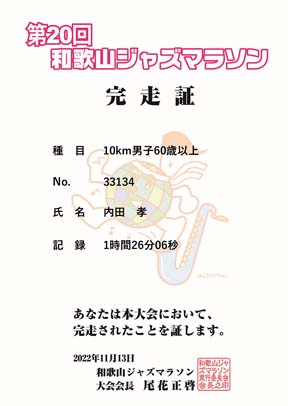 10Kmを完走しました:タイムは1時間27分00秒