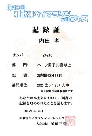 去年よりも体調が良かったので、少しタイム短縮!