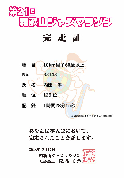 去年よりも体調が良かったので、少しタイム短縮!