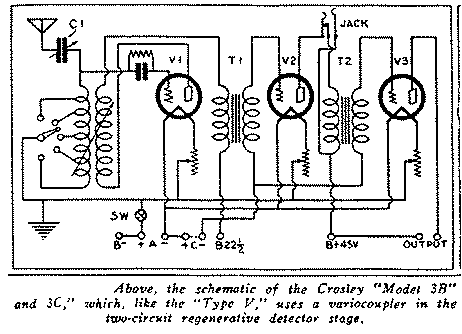 ”Better-Cost Less” Variable Condenser 画像右端の四角いのがクロスレー社独自の バリコンです 構造が単純で大変安価に製造できますが 性能は大型の回転式バリコンに負けません |